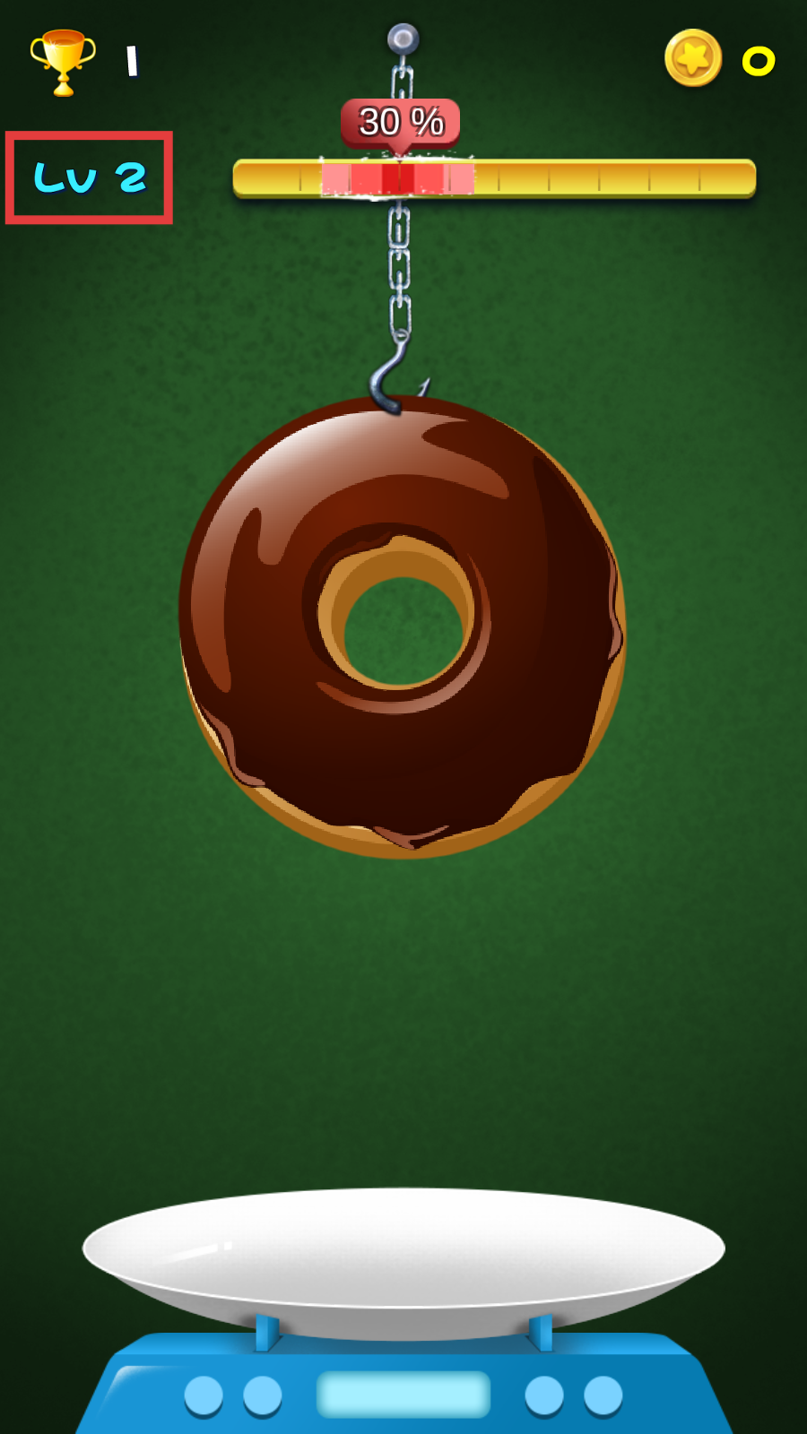 4、进入第二关【LV2】,目标切割甜甜圈至【30%】。调整切割角度,精准操作,继续挑战新关卡。