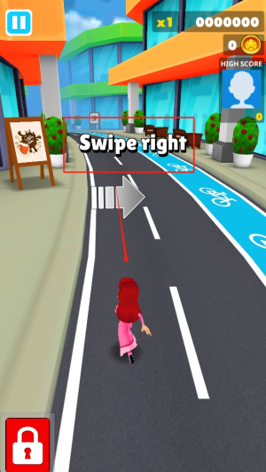 3、向右滑动。同样,向右滑动屏幕可以控制角色向右移动,避开障碍物。
