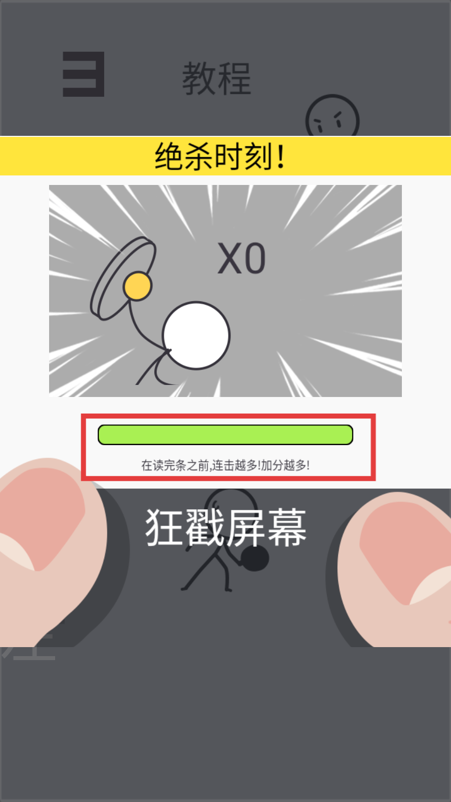 3、进入【绝杀时刻】,根据提示【在读完条之前,连击越多加分越多】,狂戳屏幕,快速连击,获取更高分数。
