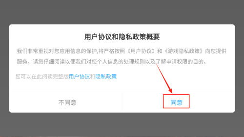 1、首次启动游戏,阅读“用户协议和隐私政策概要”,点击“同意”进入教程。