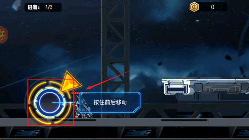 2、教程第一关提示“进度:1/3”,按提示“按住前后移动”拖动角色前进或后退。