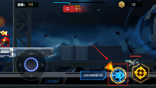4、最后阶段“进度:1/3”,在“吉界:10 8”区域,点击“冲刺”按钮躲避子弹即可通关。