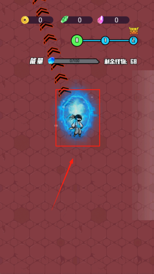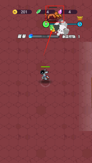 4、战斗中留意顶部“能量:201”与“剩余怪物:1”或“剩余怪物:6F”,消灭全部怪物即可通关当前关卡。