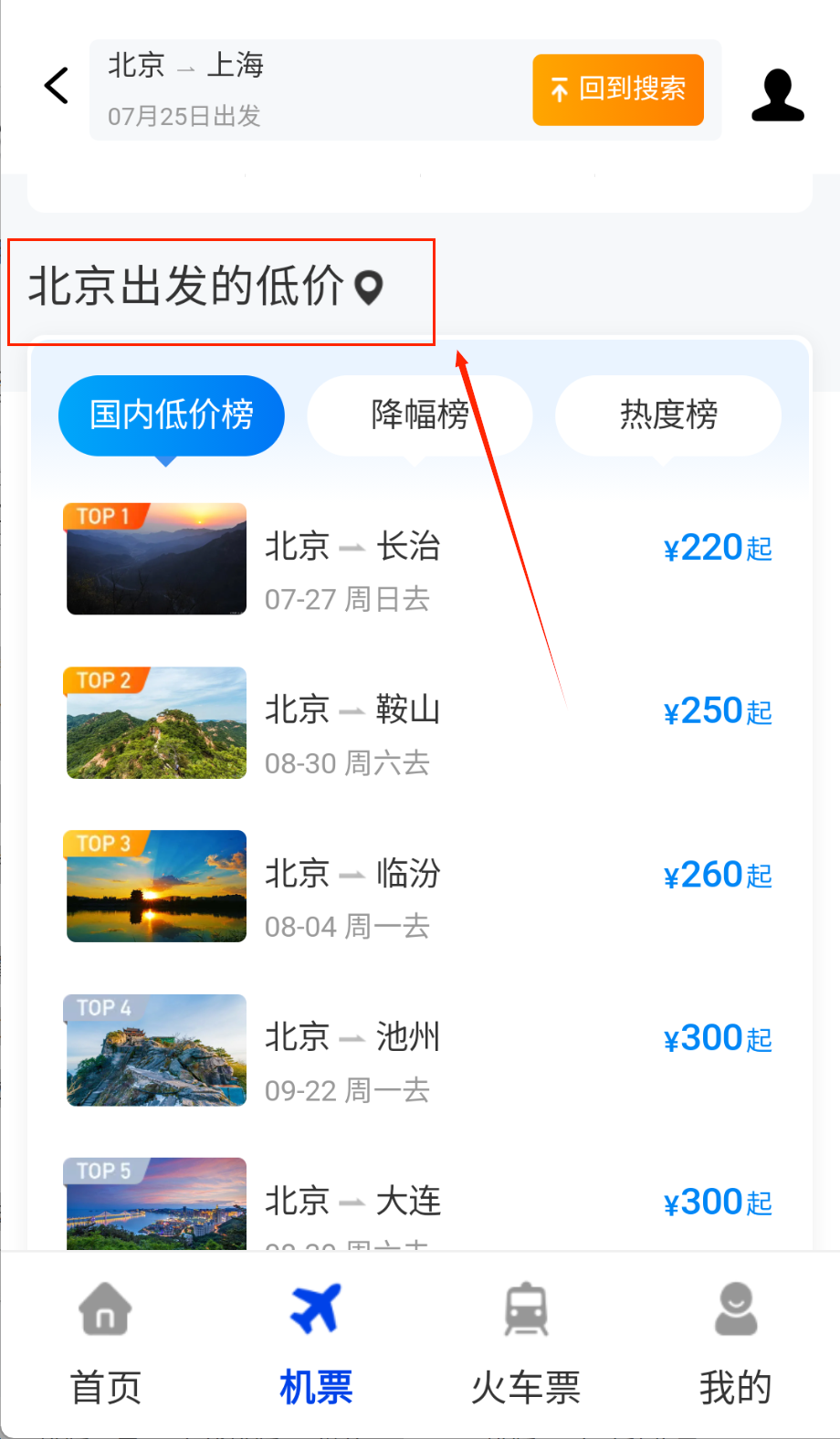 1、在首页输入出发城市和目的地后,系统会基于价格、时长和舒适度自动推荐3-5条最优出行方案供选择哦。