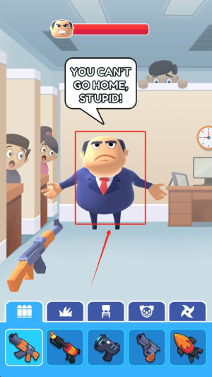 2、不断进行闯关,关卡难度递增,老板的反抗随关卡升级,特色在于闯关的递进性,激发持续挑战的欲望。