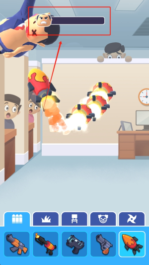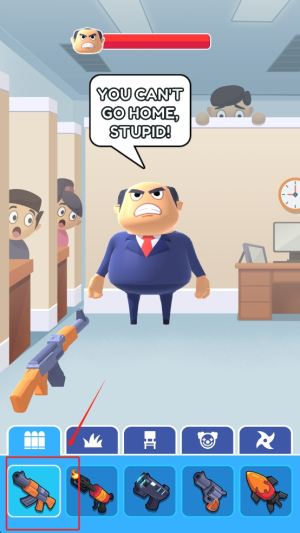2、不断闯关,面对老板的反抗,换用各种武器持续暴打,每通过一关,压力释放得更彻底,玩得尽兴。
