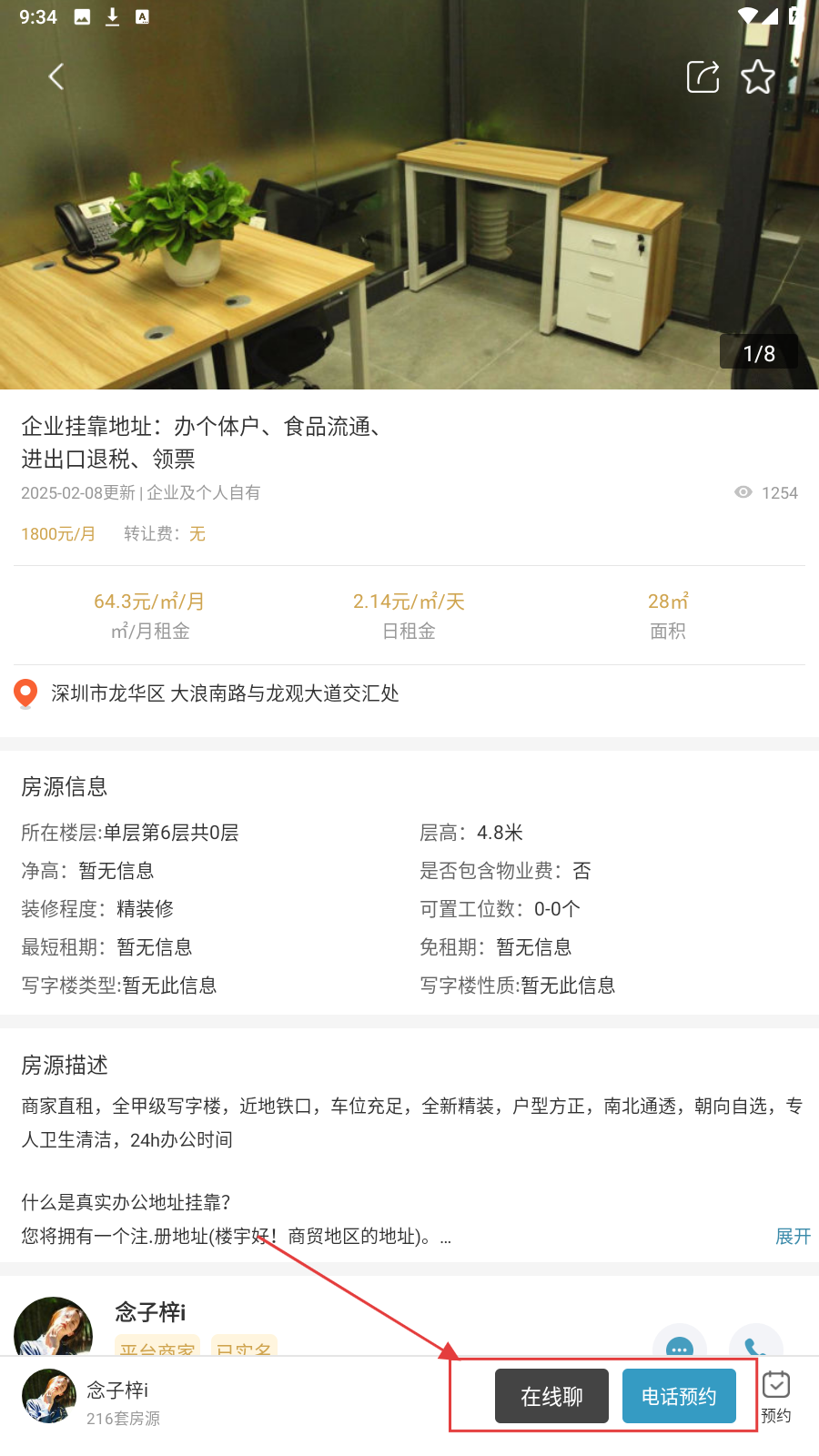 3、进入房源信息页面,查看房源信息,如若对房源感兴趣,可以点击下方【在线聊】。