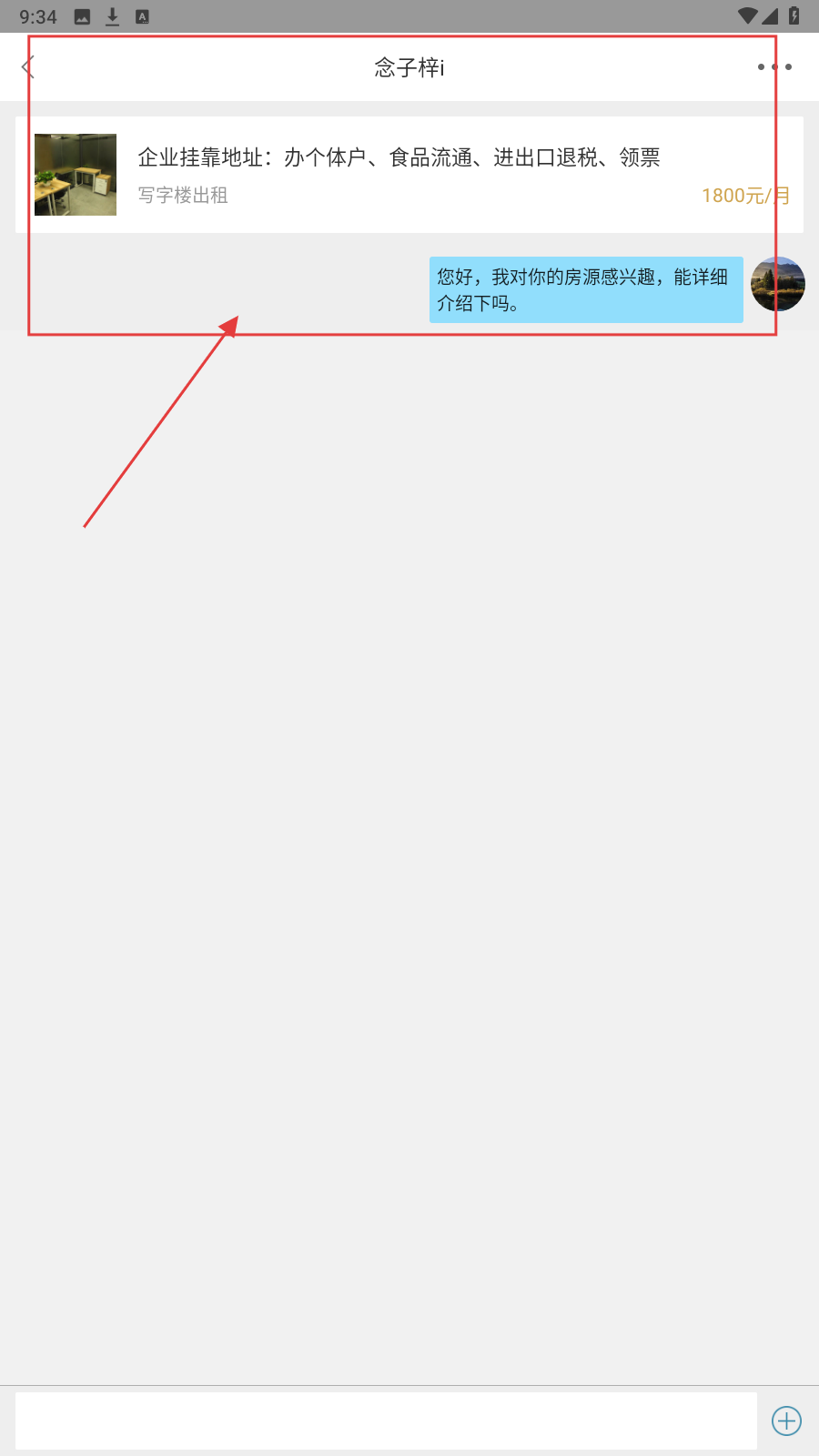 4、在聊天页面可以向商家了解具体信息,进行实时交流。