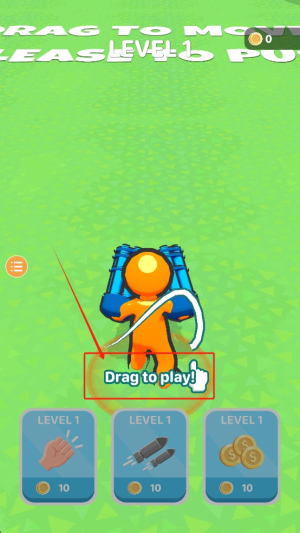 2、接着,开始游戏。在主界面,拖动角色到“Drag to play!”区域以开始游戏。