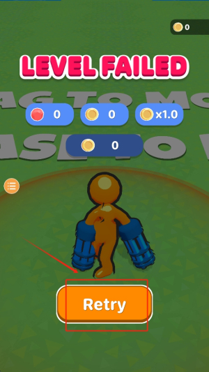 4、最后,重新开始关卡。如果关卡失败,点击“Retry”按钮重新开始当前关卡,继续尝试直到成功。
