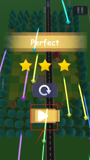 4、最后,成功到达终点后,点击播放按钮继续下一关,或者点击重播按钮重新开始当前关卡。