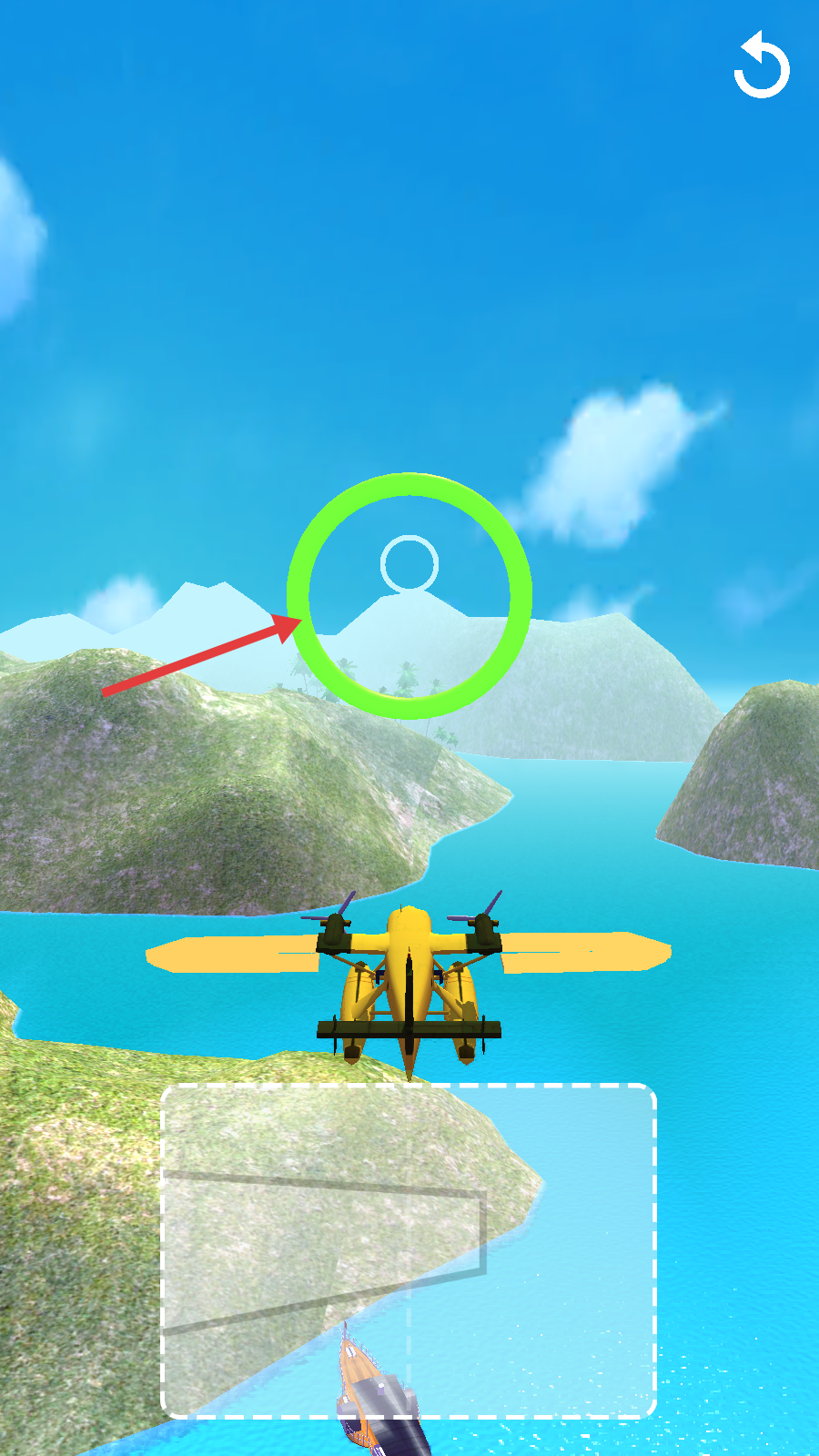 3、通过操纵飞机的升降,用来瞄准绿色圆圈目标,调整飞行角度,精准飞入目标区域,完成关卡任务。