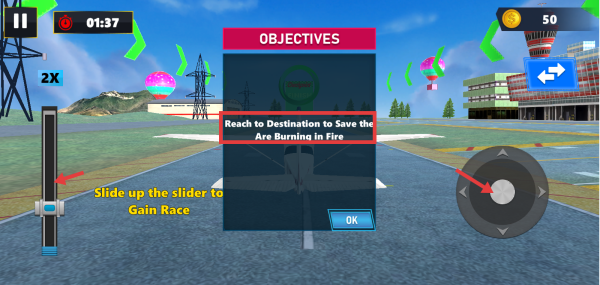 2、游戏中滑动滑块加速,操控方向键躲避障碍,留意时间限制,尽快抵达目的地。