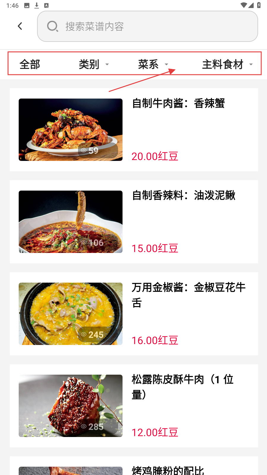 2、搜索菜谱时,通过筛选栏,精准定位想做的菜系菜品,缩小查找范围,高效找菜谱。
