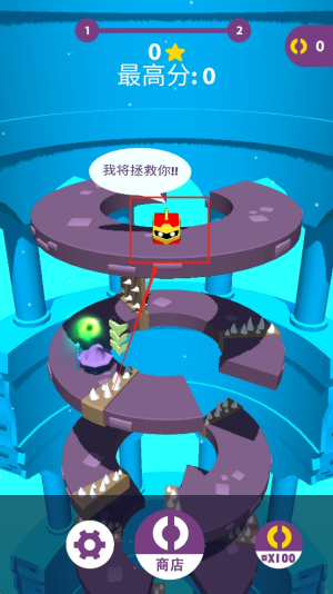 2、滑动屏幕旋转高塔,高塔的旋转改变下落路径,旋转的灵活性增加挑战,特色在于场景的互动性,玩法不单一,有变化。