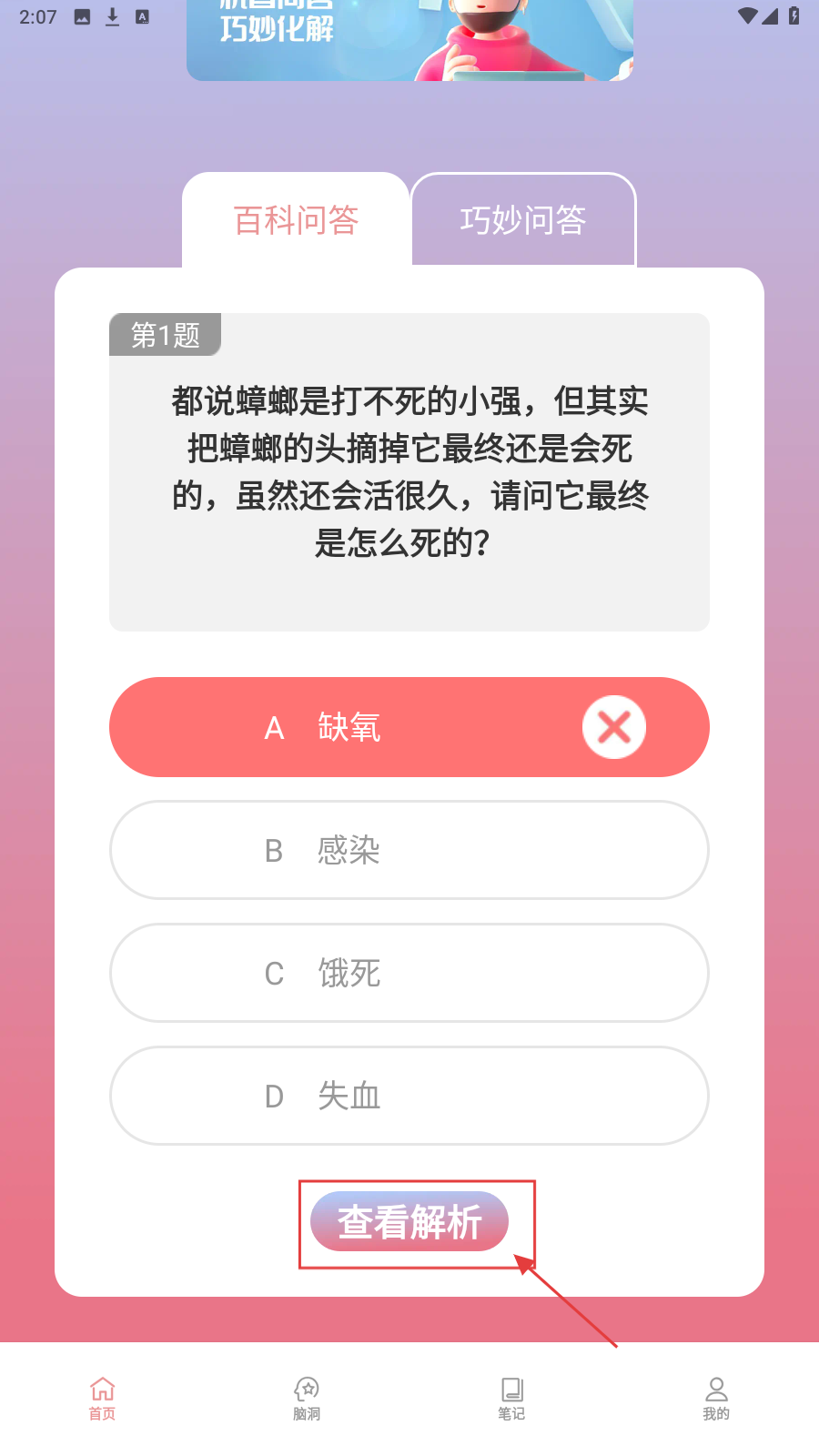 2、若答错,点【查看解析】,了解正确答案及原因,积累知识下次应对。