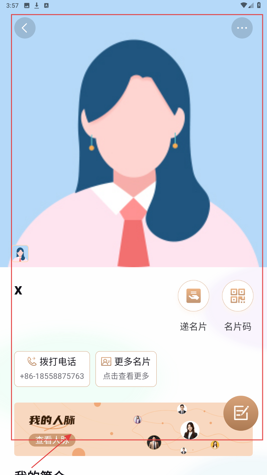 4、生成名片后,在展示页可【递名片】【查人脉】,用名片功能拓展社交。