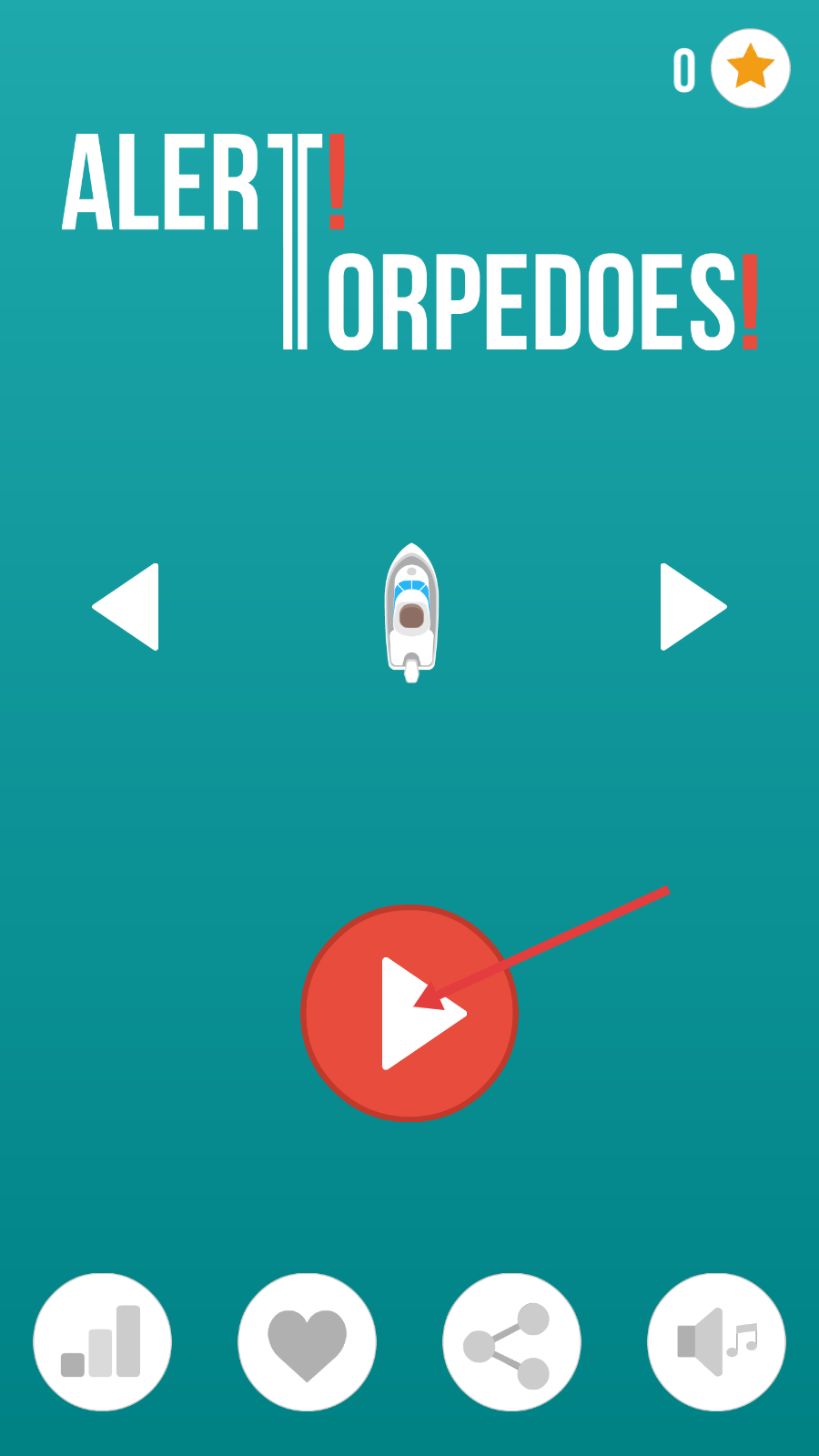 1、点击界面中间的红色开始按钮,进入游戏,开启躲避鱼雷的挑战。