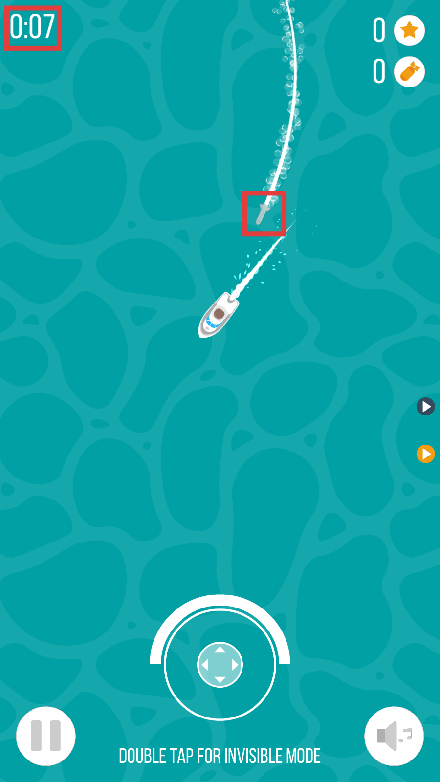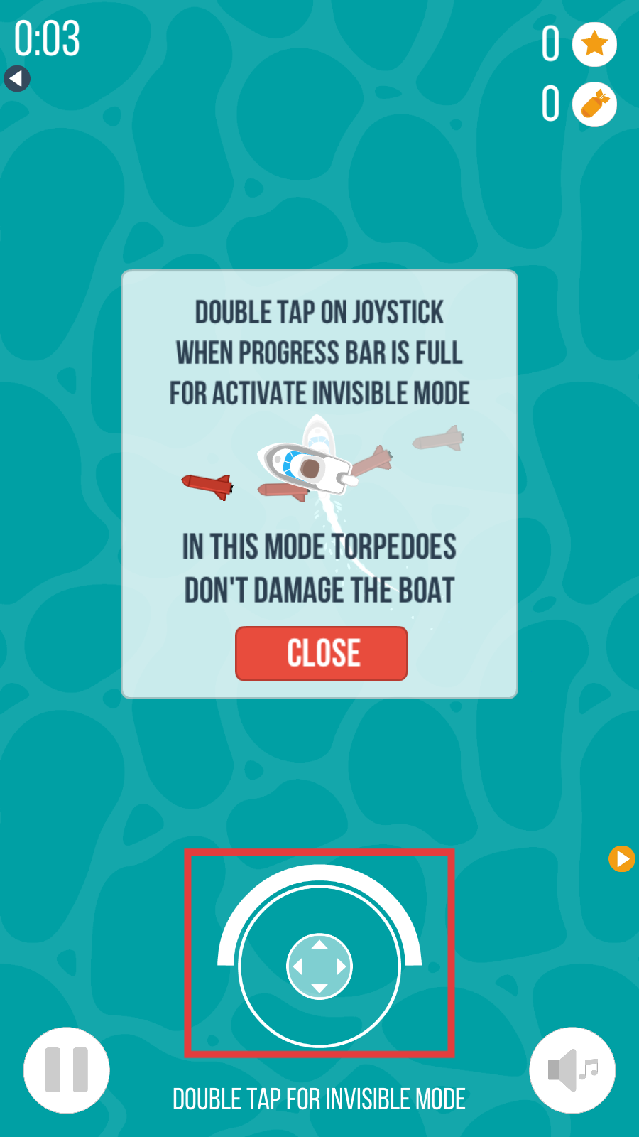 2、留意提示信息,当进度条满时,双击操纵杆可激活隐身模式,在此模式下鱼雷不会伤害船只。