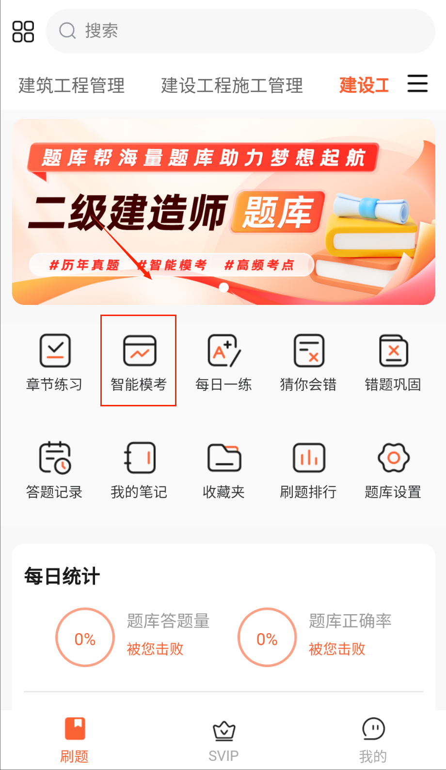 二建题库帮深度融合考试题库与智能学习功能,通过AI算法精准匹配用户学习需求,支持0.3秒响应99%题目请求,确保练习过程流畅高效。该工具提供章节练习、模拟考试、错题巩固、学习笔记、成绩分析和资讯查阅6大核心服务,全面覆盖二级建造师考试备考需求。