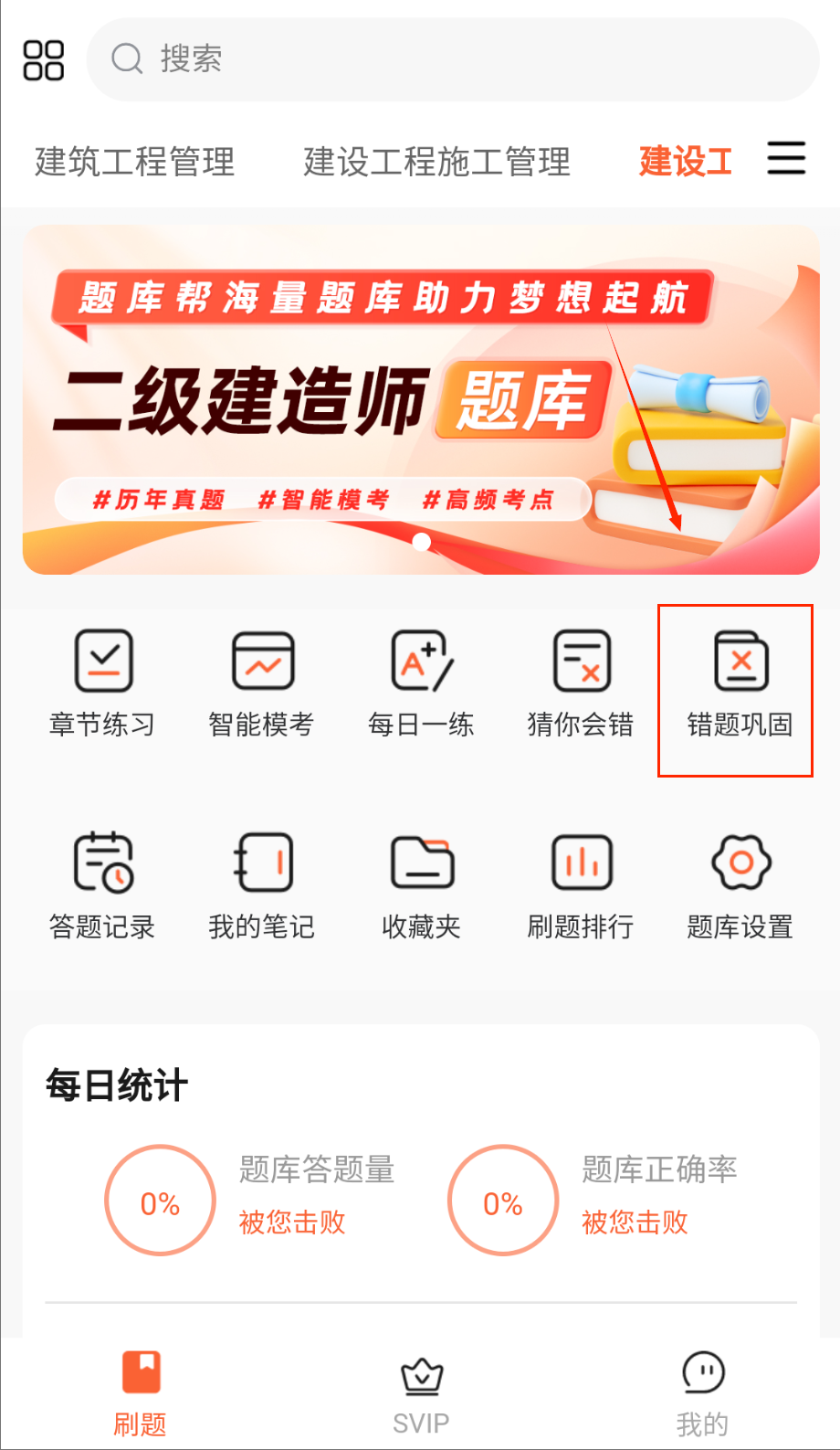 3、错题本自动归类错误题目,可按施工管理、工程法规等6大知识点分类强化练习呀。