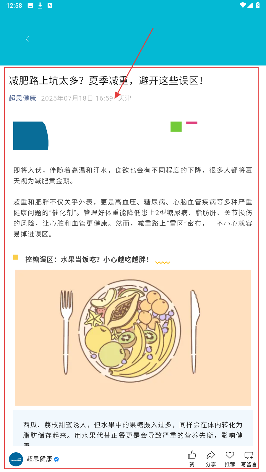 2、打开减重误区文章,仔细阅读内容,避开【控糖误区-水果当饭吃】等陷阱。