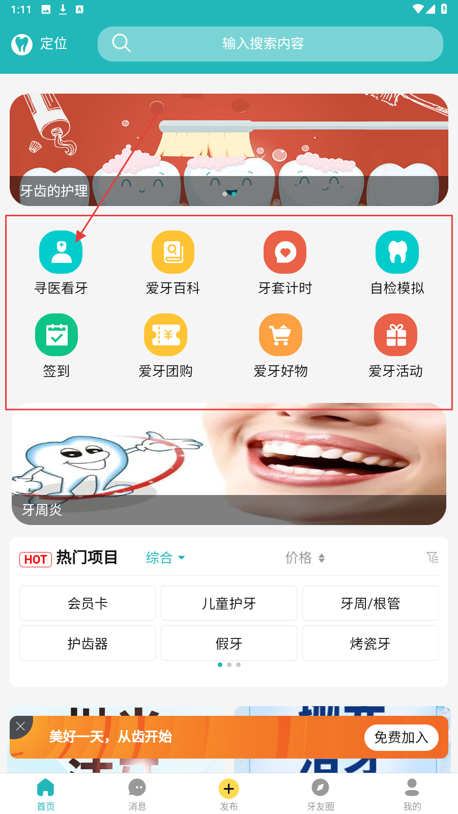 3、优惠活动推送:整合口腔机构优惠信息,提供看牙套餐团购、免费义诊活动报名,降低口腔护理成本。