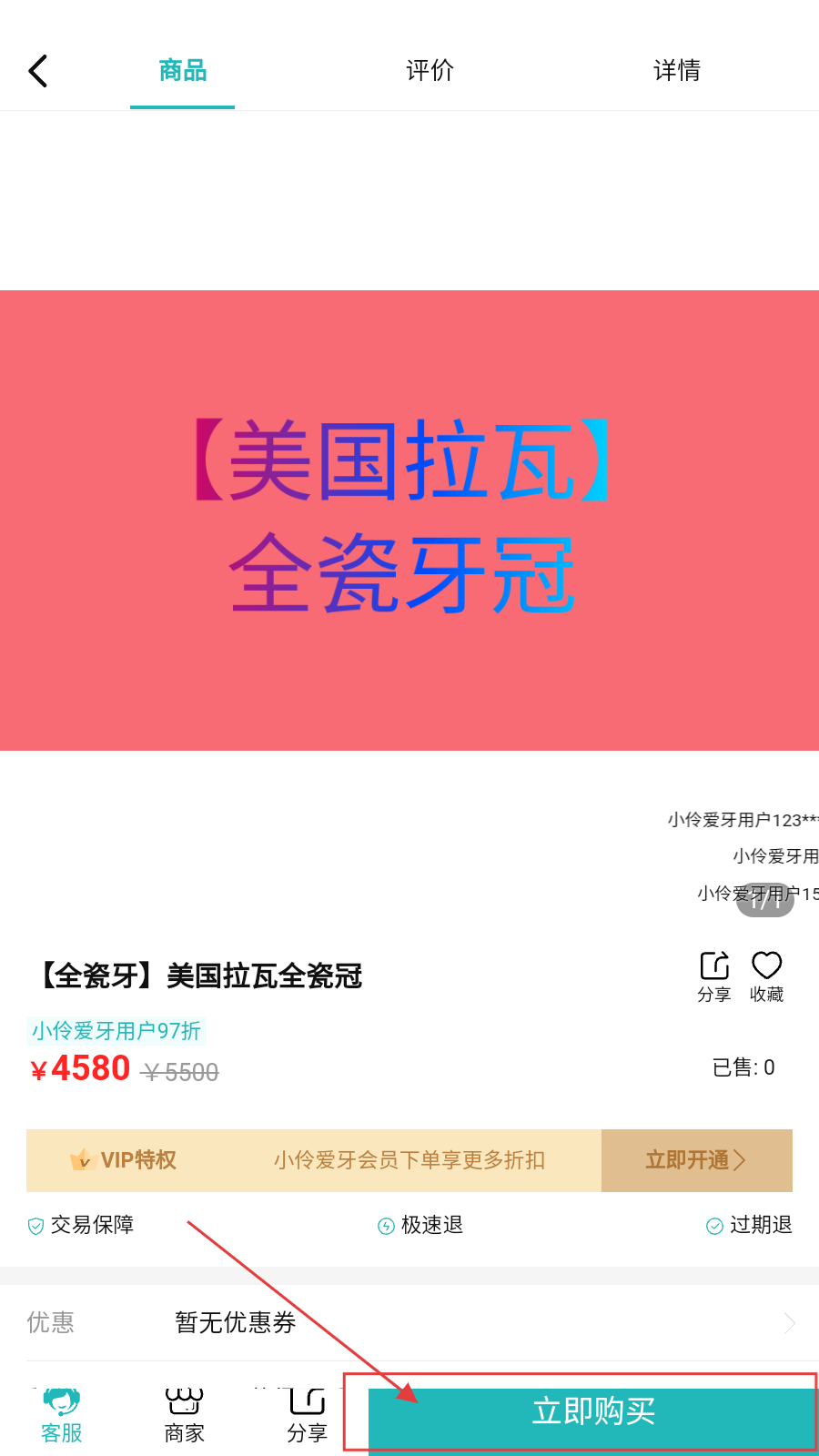 3、进入机构详情页,切换【商品】栏,查看全瓷牙等项目,选适配自己的商品。
