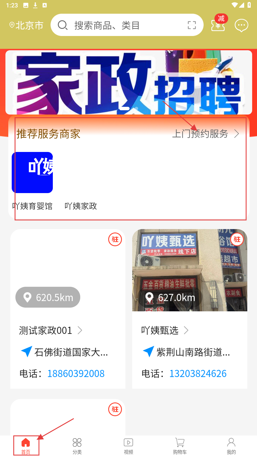 1、进入家政平台,在【首页】找到【上门预约服务】,可快速进入服务选择页。