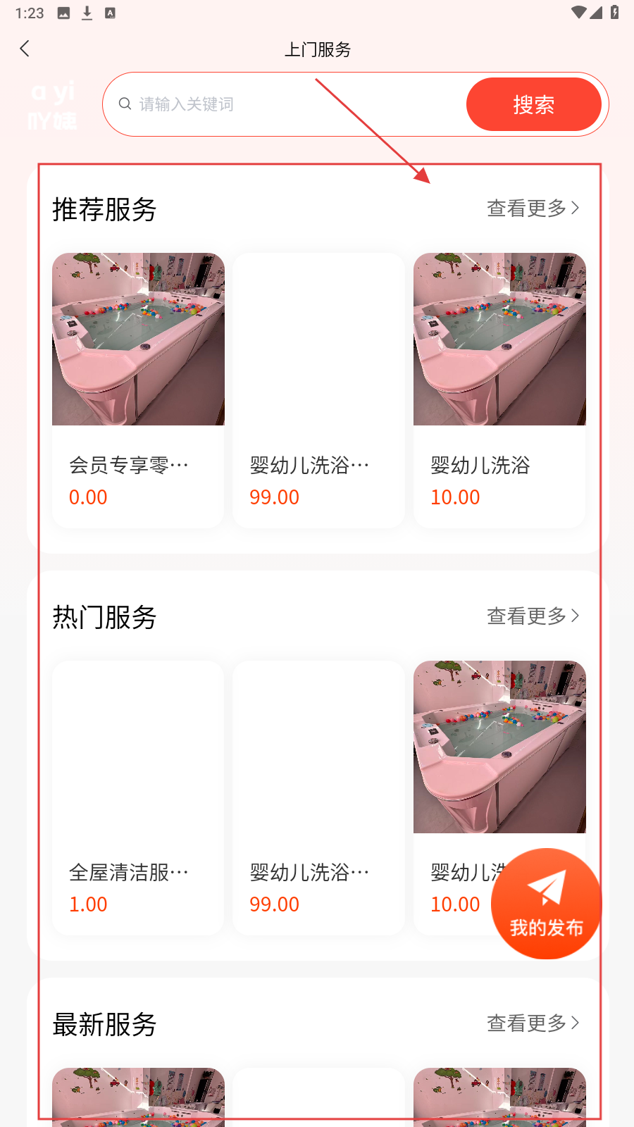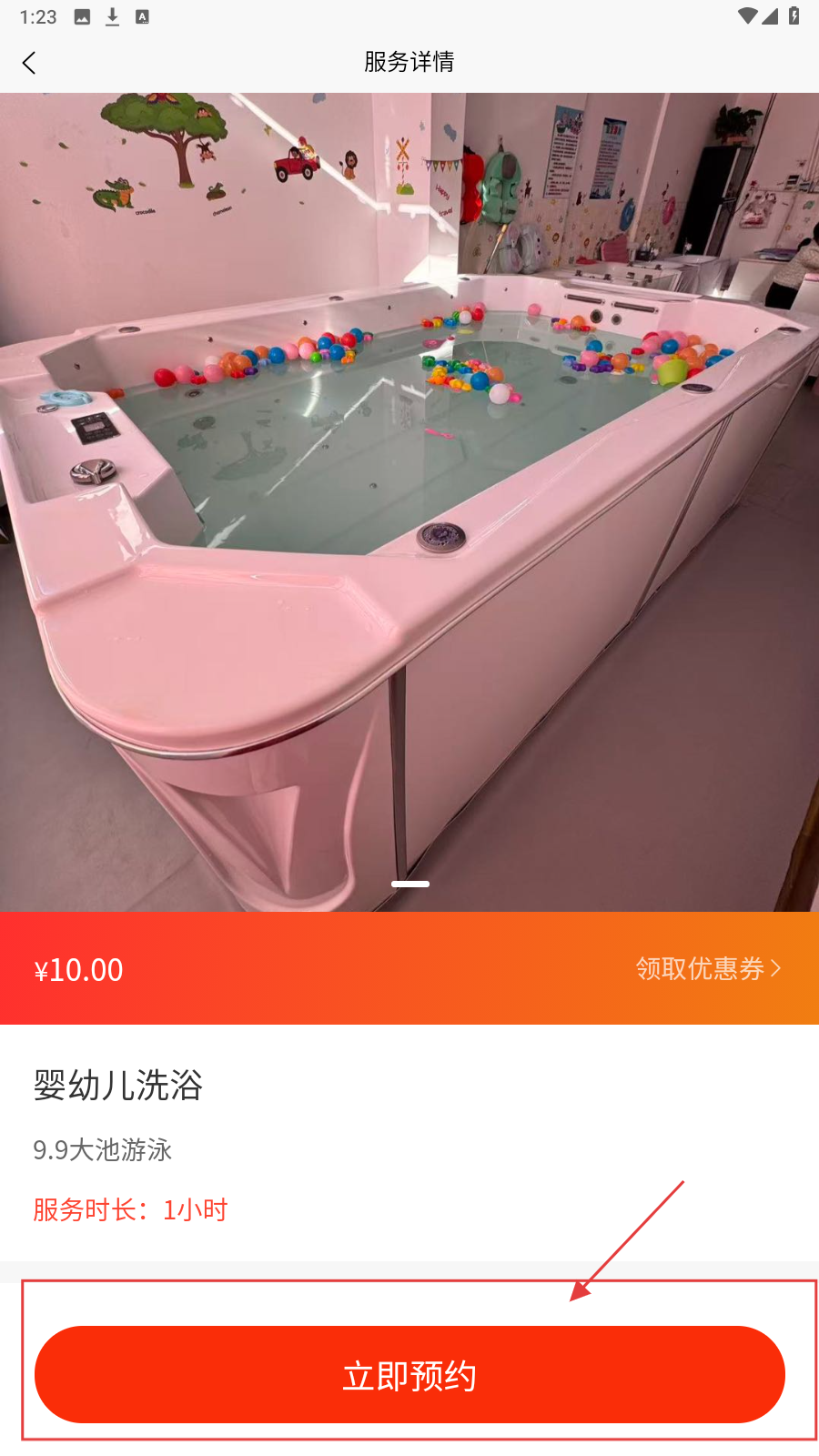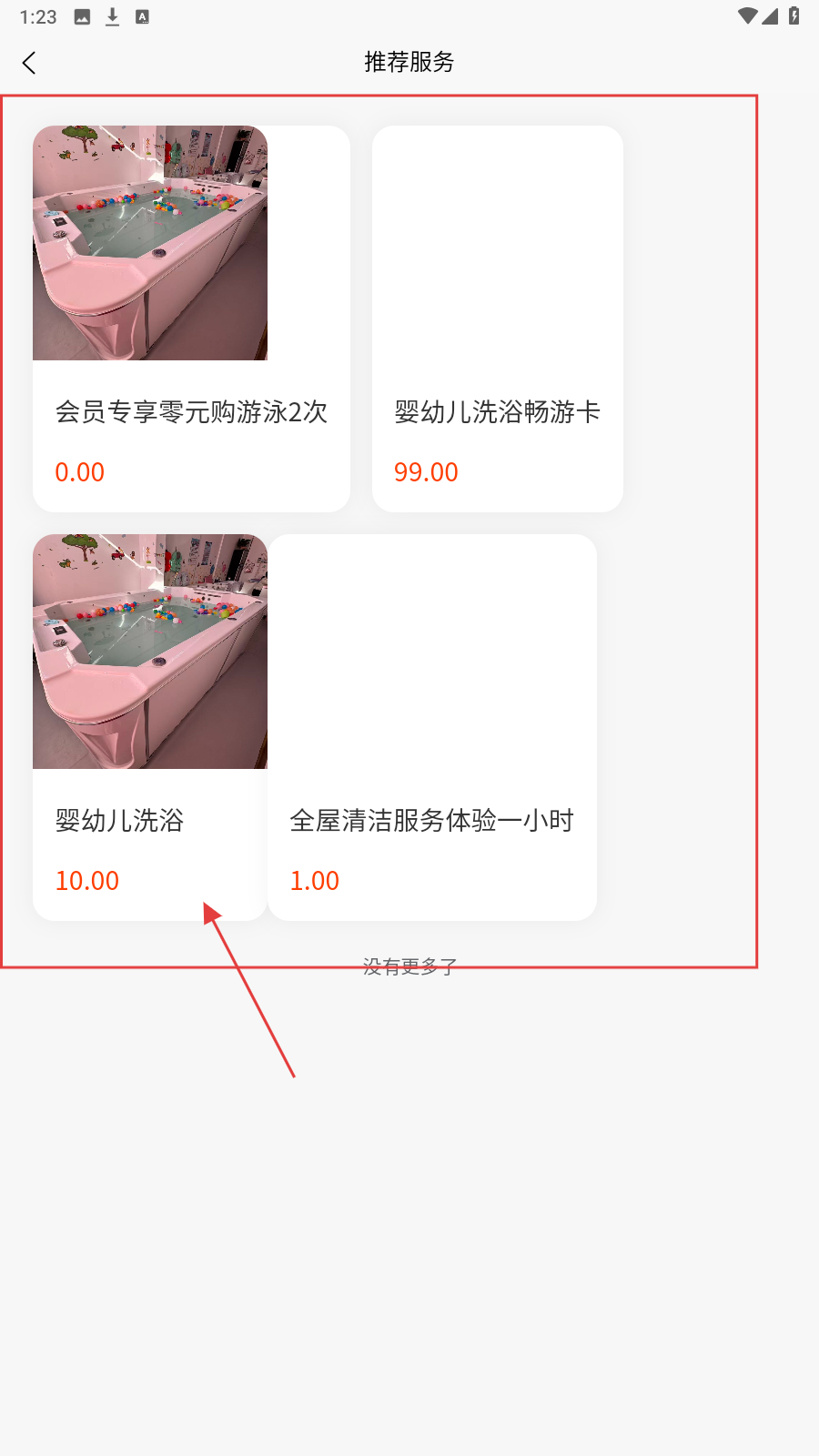 3、选【推荐服务】里的具体项目,如【婴幼儿洗浴】,点击可查看详情与预约。