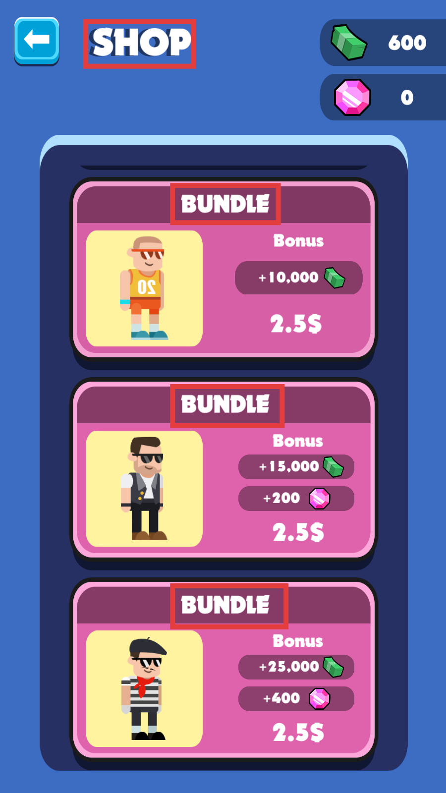 1、进入商店,购买角色礼包,如黄色运动服角色,获得10,000金币奖励,提升游戏资源。