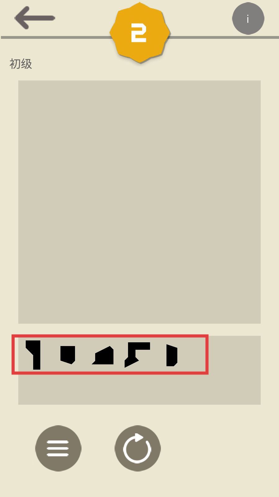 1、选择第2关,进入游戏,查看拼图碎片,了解拼图形状和位置。