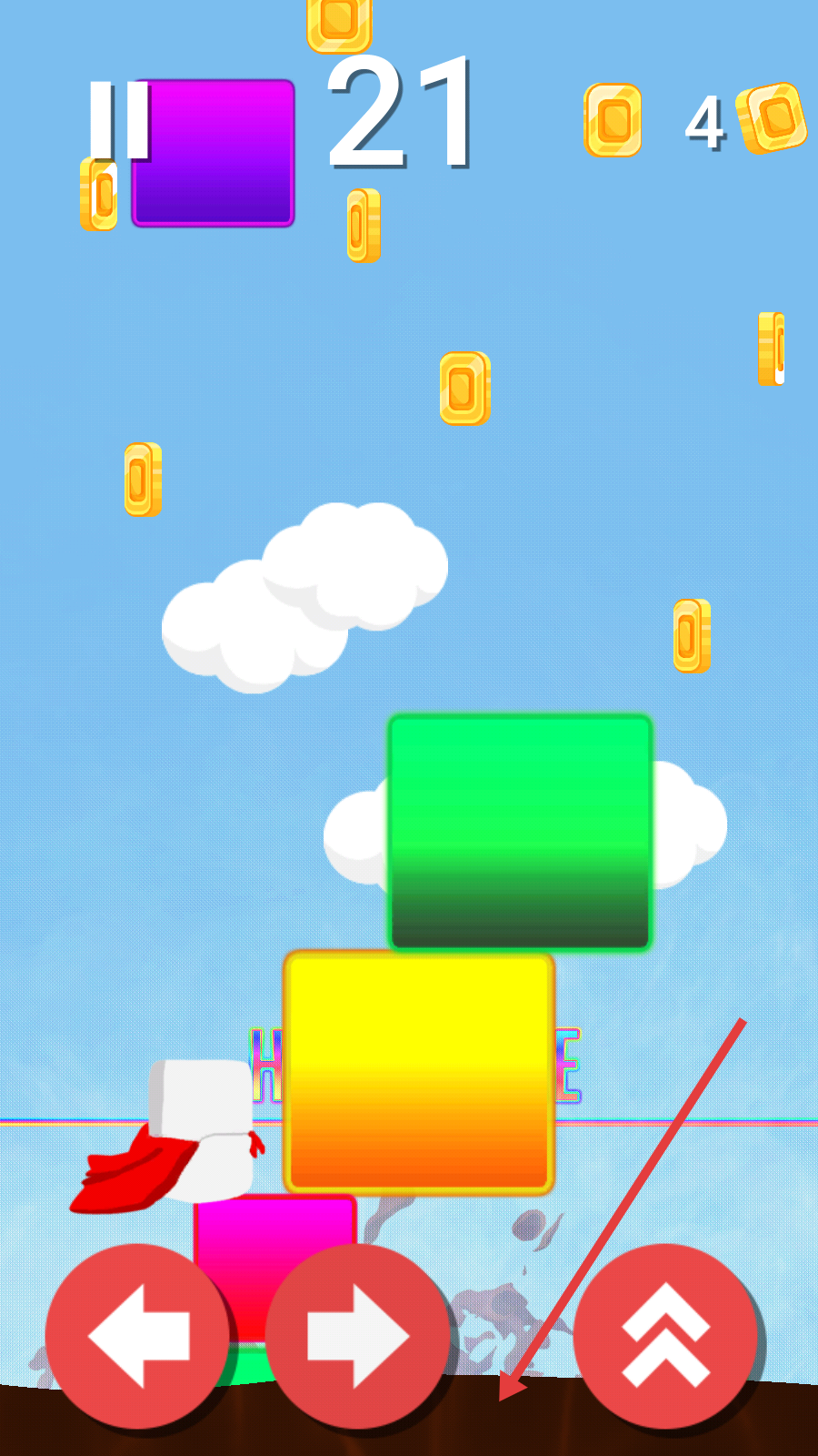 2、使用左右箭头移动,向上箭头跳跃,收集金币,避开障碍物。