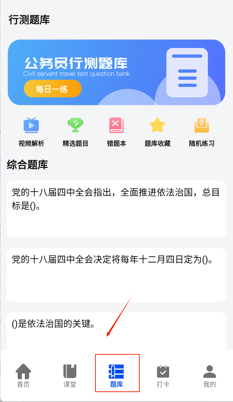 2、题库可按行测五大模块或高频考点筛选,错题自动归类并生成包含正确率曲线的分析报告啦。