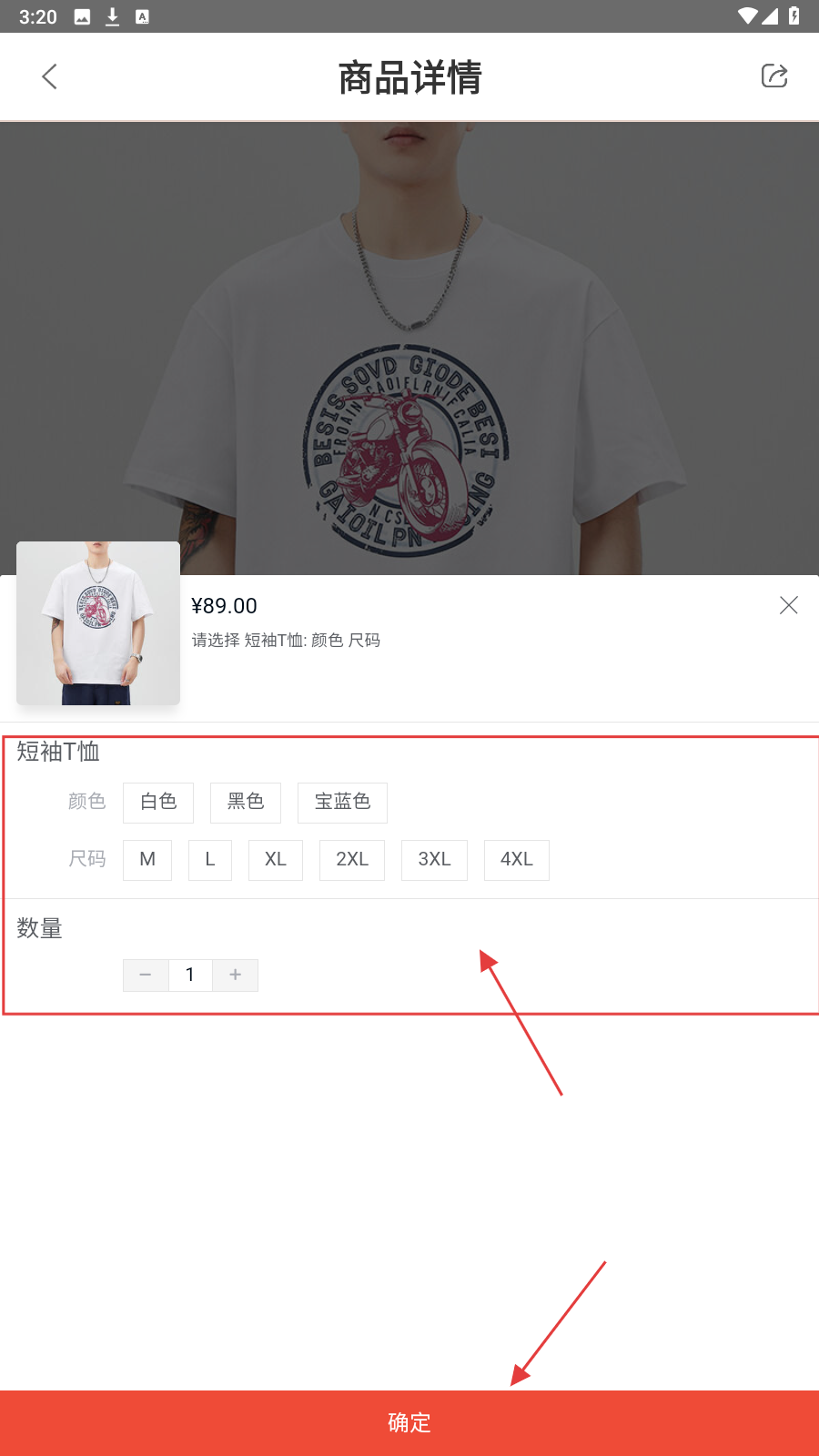4、选【颜色-尺码-数量】,点【确定】完成规格选择即可购买。