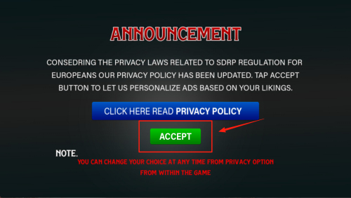 1、阅读“ANNOUNCEMENT”弹窗后,点“ACCEPT”同意隐私政策即可继续。