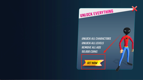 3、进入“UNLOCK EVERYTHING”页面,点“GETNOW”用0元购买全角色与去广告。