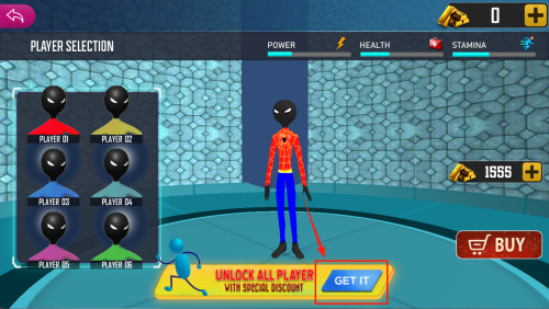 2、在“PLAYER SELECTION”界面,点击“UNLOCK ALL PLAYER”旁的“GETIT”查看折扣。