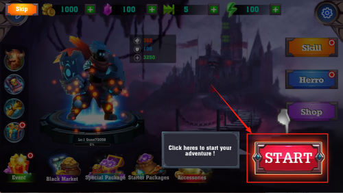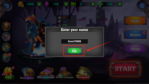 2、在“Enter your name”输入框键入“Herro”后点击“START”确认角色名。