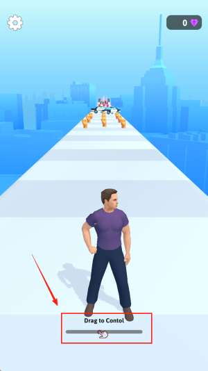 1、在“Drag to Control”界面按住并拖拽,控制角色完成关卡操作。