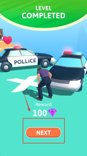 4、再次看到“LEVEL COMPLETED POLLICE Reward 100”画面,点击“NEXT”领取100奖励并进入下一关。
