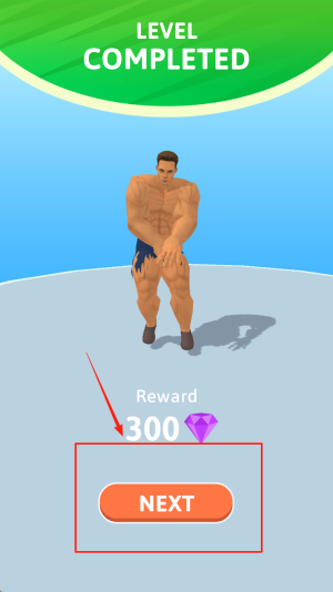 2、当出现“LEVEL COMPLETED Reward 300”画面,点击“NEXT”领取300奖励并继续。