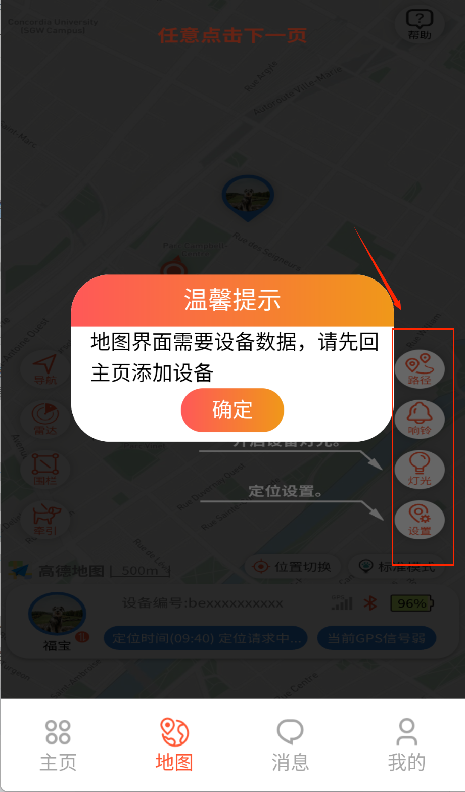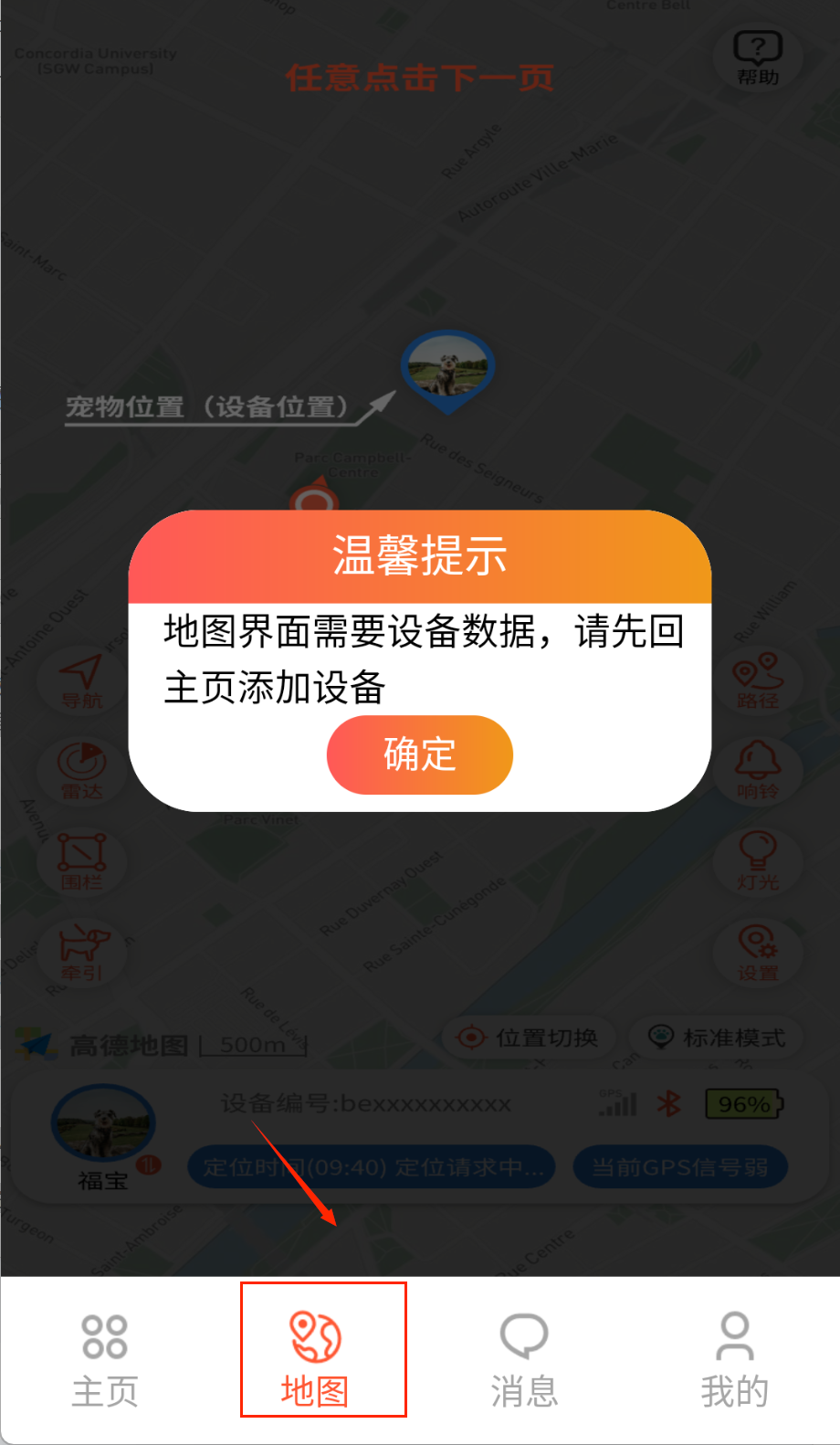2、定位地图支持实时更新宠物位置,可一键导航至宠物所在位置,误差不超过5米啦。