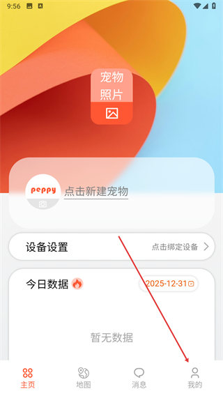 1、打开宠悦悦悦应用,点击界面底部右侧的我的选项。