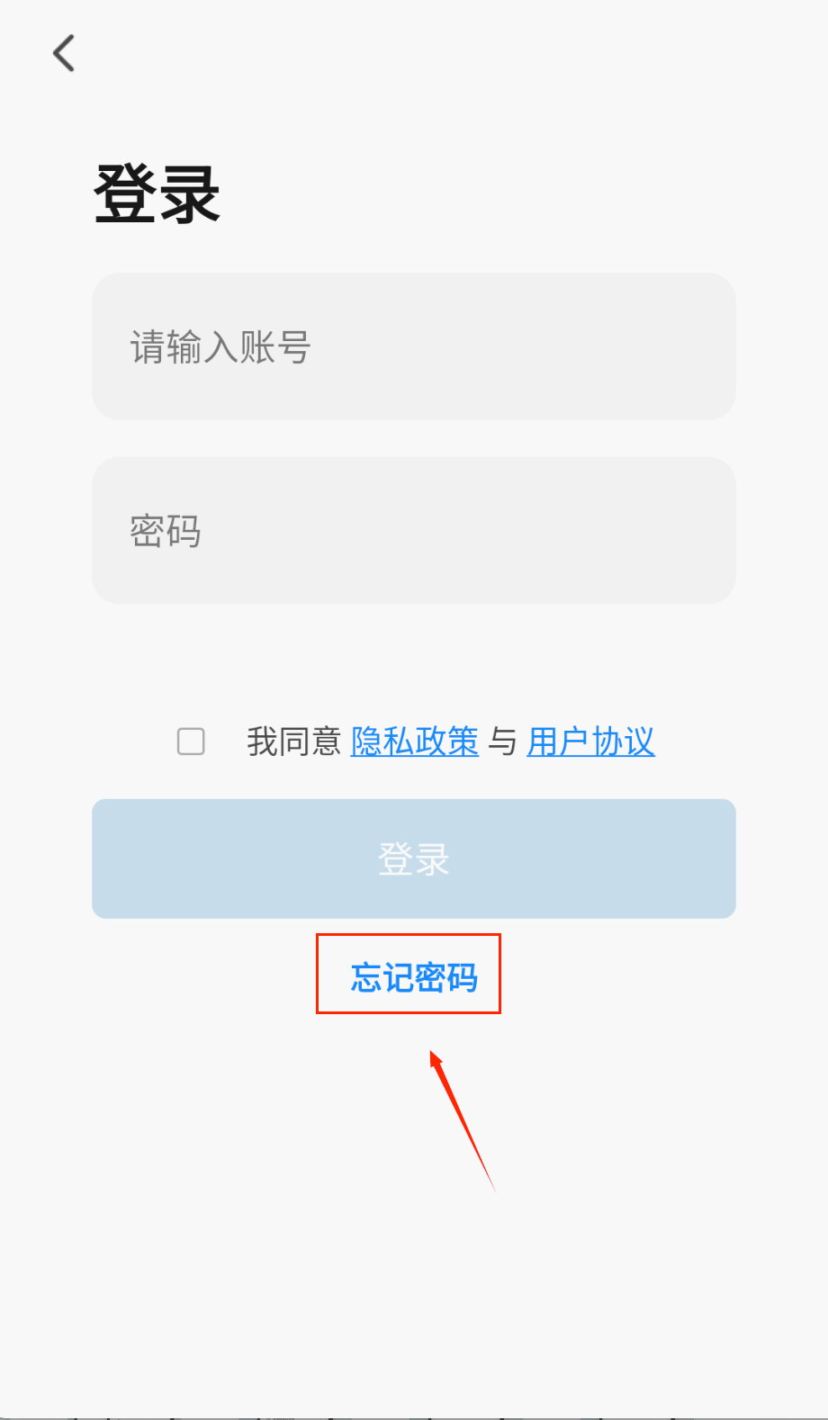 1、新用户首次使用需进入登录页面,找到底部"忘记密码"蓝色文字链接,点击即可进入密码找回流程哦。