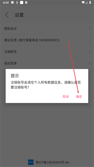 4、在弹出的提示窗口里,确认信息后点击确定完成注销。