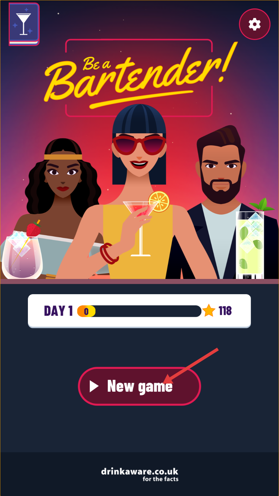 1、点击【New-game】按钮开启游戏,开启后即可进入游戏场景开启调酒之旅。