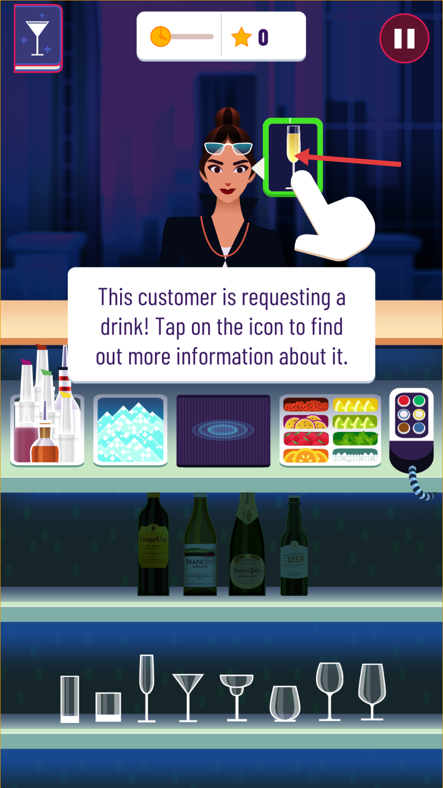 2、当看到提示时,点击对应饮品图标,了解顾客需求。