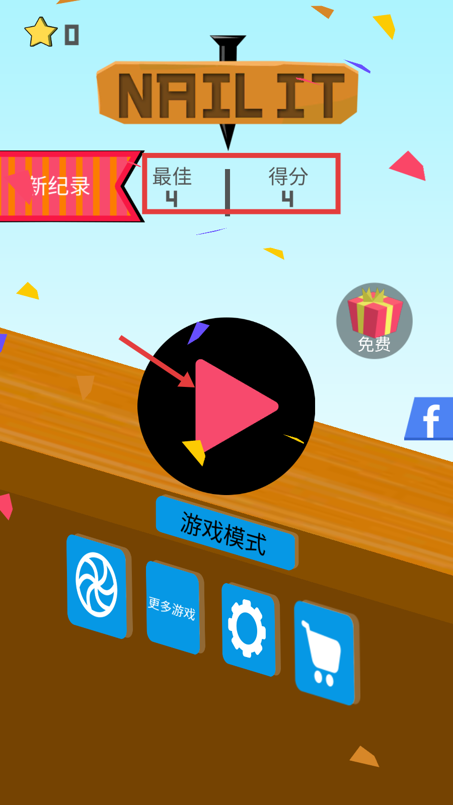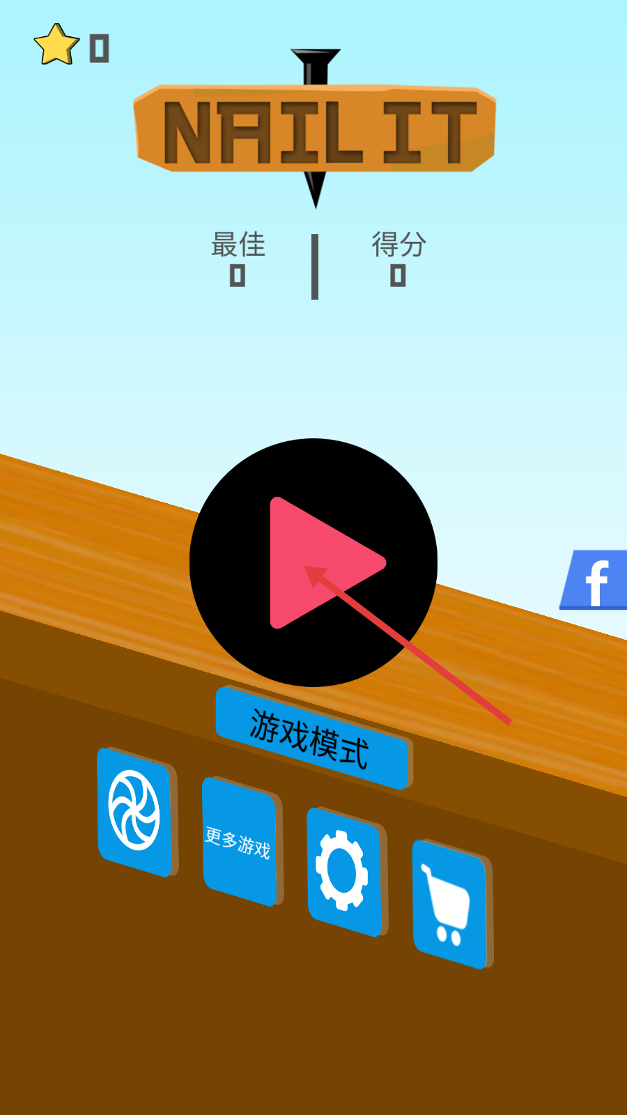 1、点击粉色三角形开始按钮进入游戏,开启后即可进入游戏场景开始敲钉子挑战。