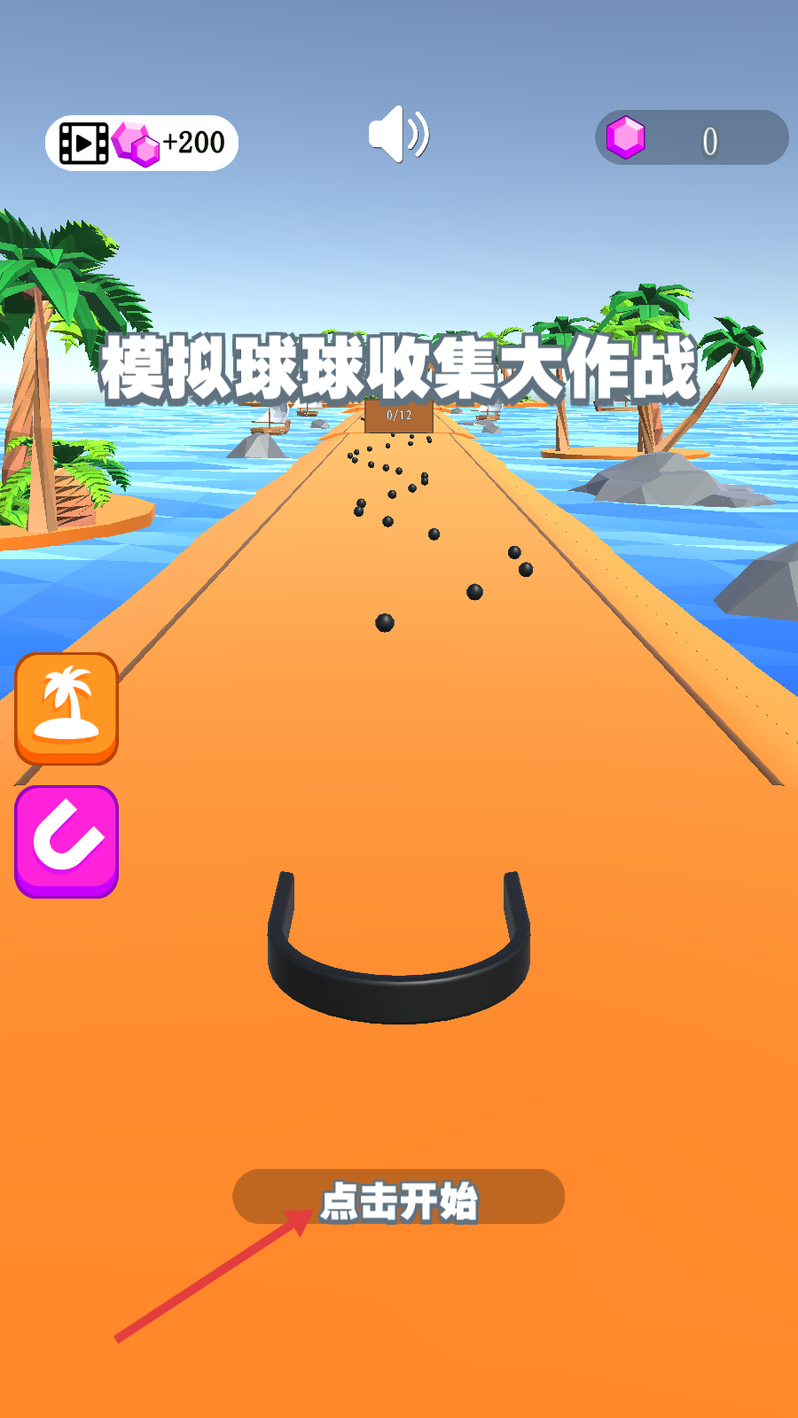 1、点击【点击开始】按钮进入游戏,开启后即可进入游戏场景开始收集小球挑战。